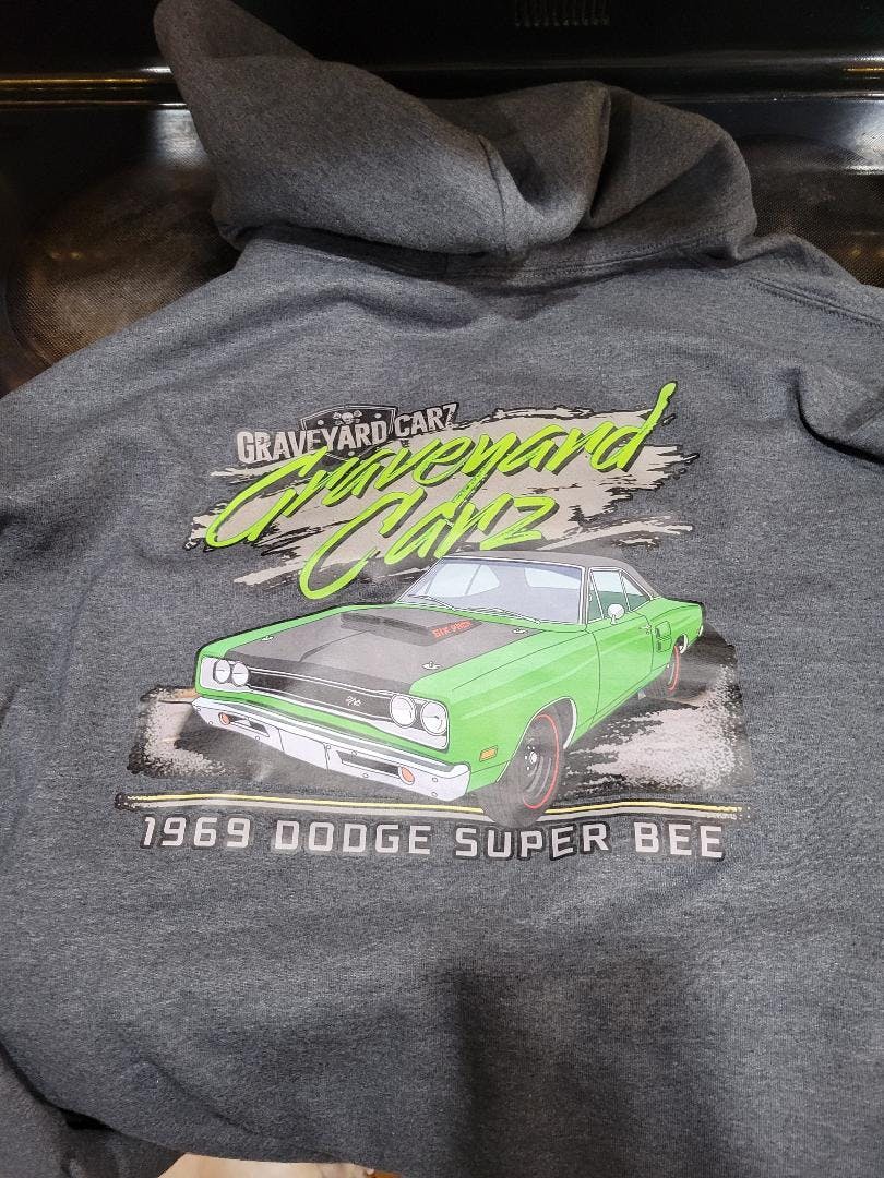 Kevin J Gallant True is l am really happy with my new hoodie, the fit, the comfort and most of all the logo of the car I the back. My dad bought at new off the lot 1969 Super Bee when l was 8, the Bee was equipped with a 383 magnum with 440 heads, automatic, 3 on the tree, bench seat with black interior, dark green exterior with a black stripe with that iconic Bee.