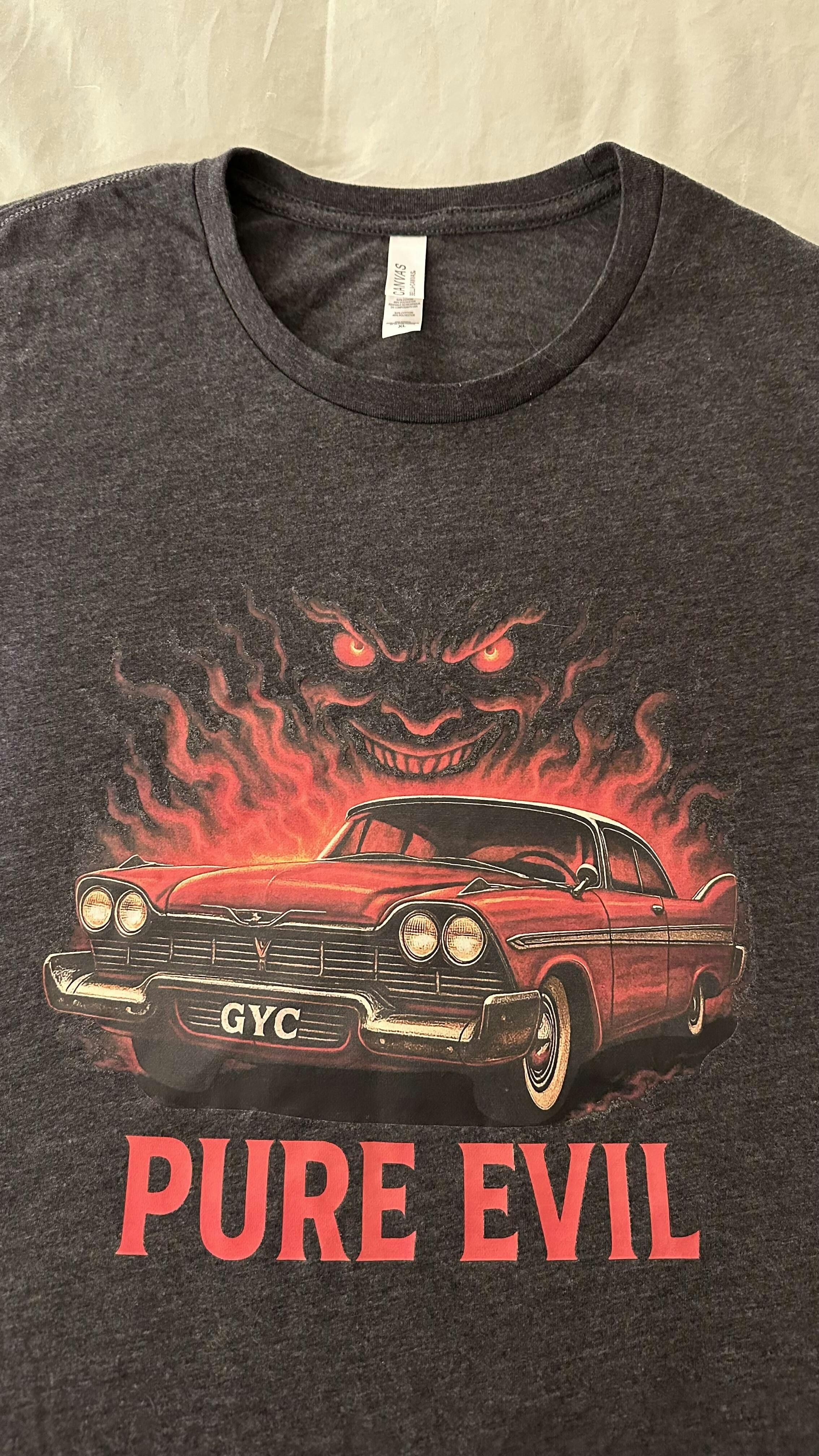 This tee has quickly found its way to the front of my rotation. The design is both clever and creepy, and pays homage to one of the most memorable Chrysler products to be featured in a motion picture. It is soft, durably constructed, and fits beautifully. Paired with a flannel or a light jacket, it really stands out. My only regret is the tags bearing the size and care instructions are sewn into the collar rather than being imprinted inside. They're easy enough to remove, however. Still, a brilliantly conceived and executed garment. Mopar or no car!